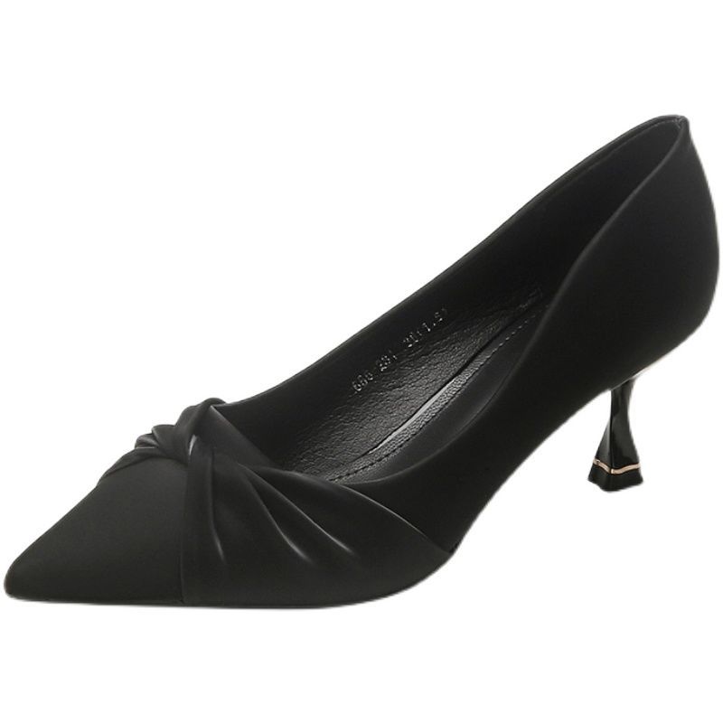 【รองเท้า】 สีดำ สไตล์ใหม่ สง่างามความเป็นหญิง สง่างาม มีระดับ ออกแบบรองเท้าหัวแหลม รองเท้าหุ้มส้น สไตล์เกาหลี