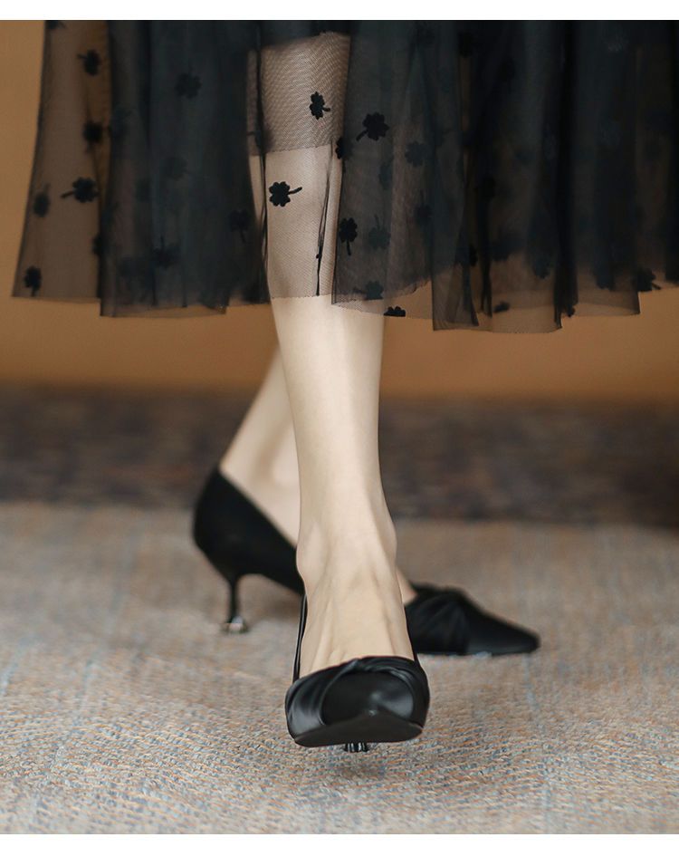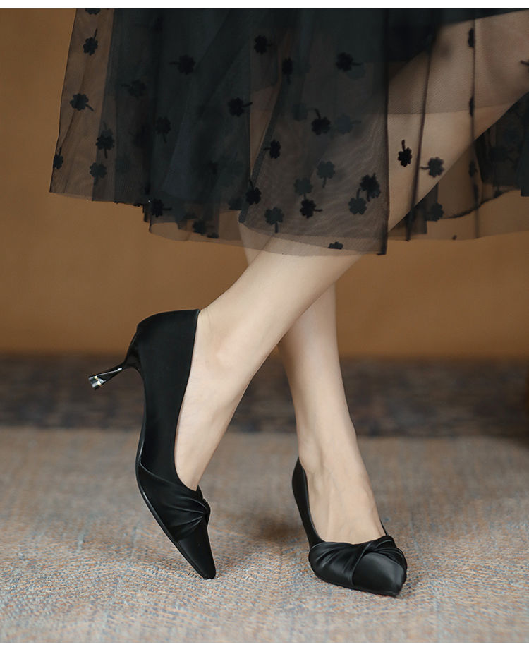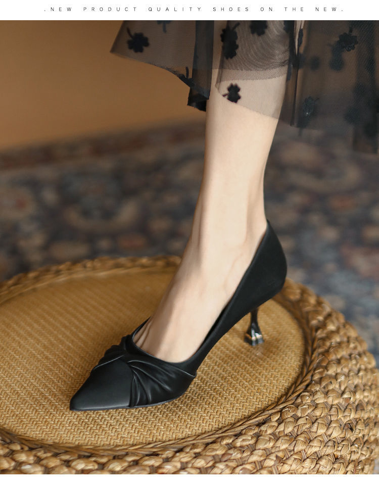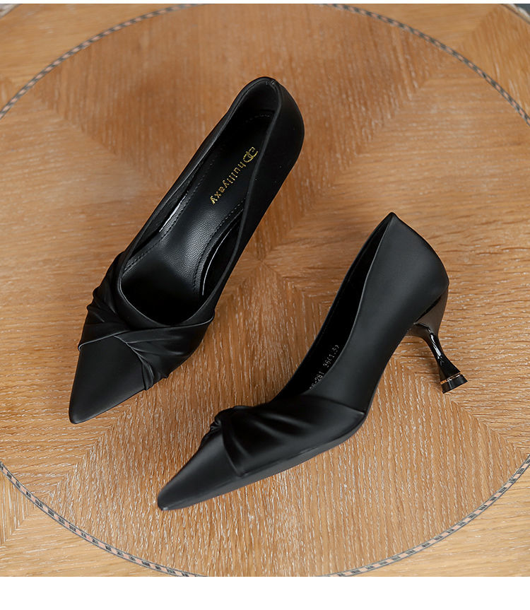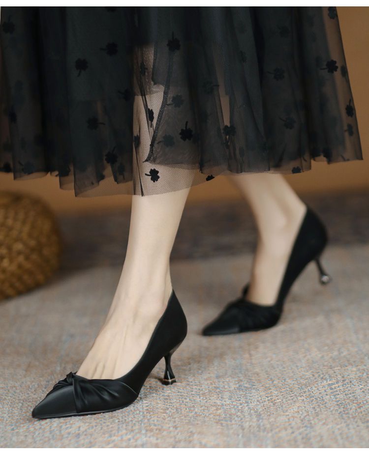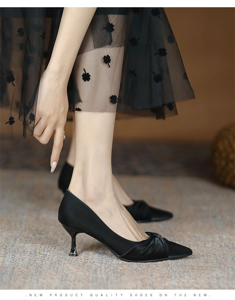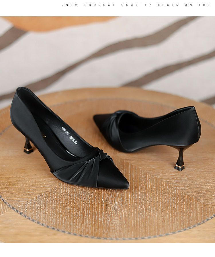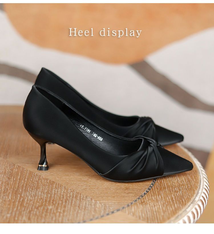 【ส้นสูง】 สีดำ สไตล์ใหม่ สง่างามความเป็นหญิง สง่างาม มีระดับ ออกแบบรองเท้าหัวแหลม รองเท้าหุ้มส้น สไตล์เกาหลี