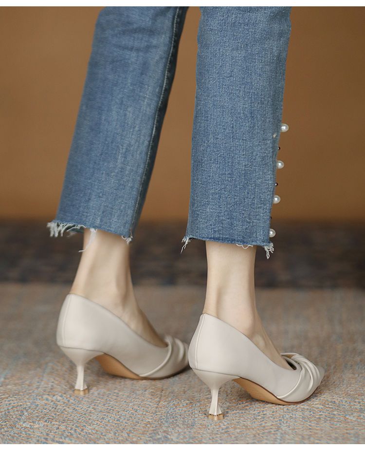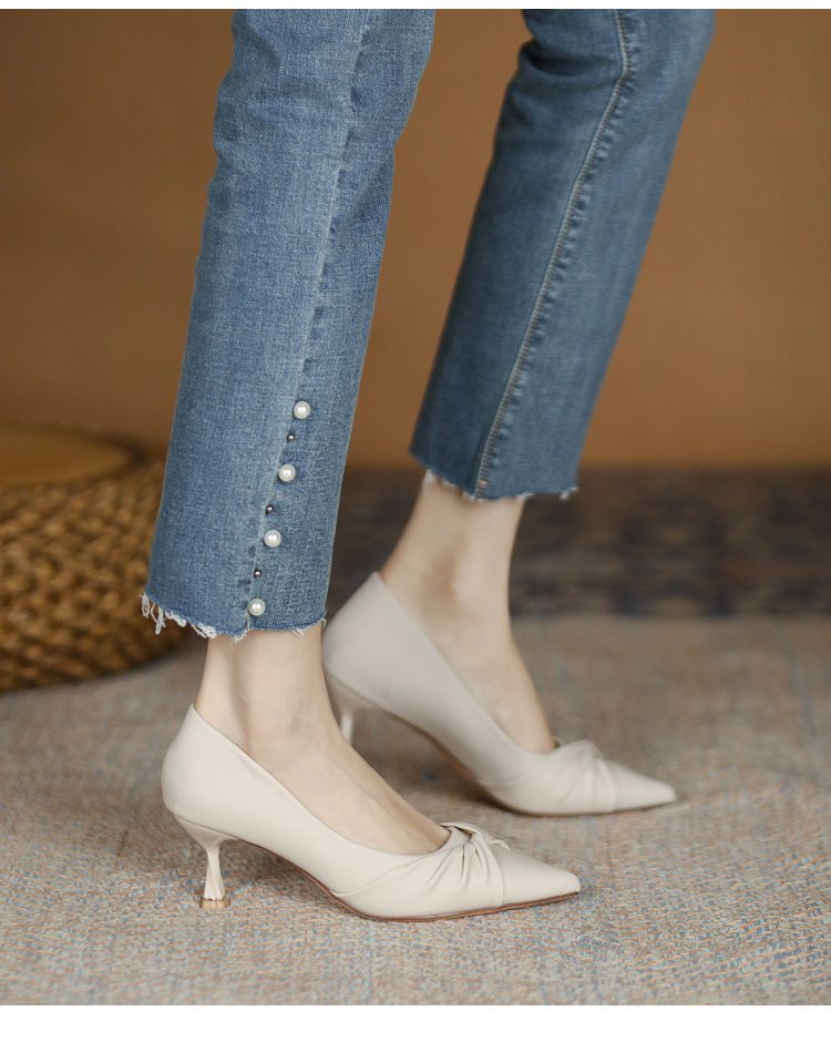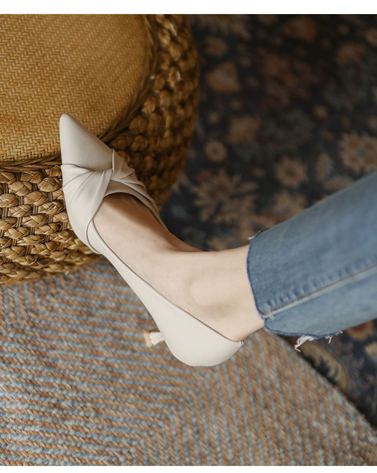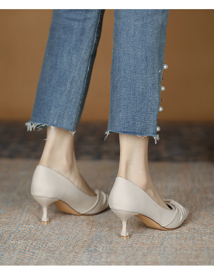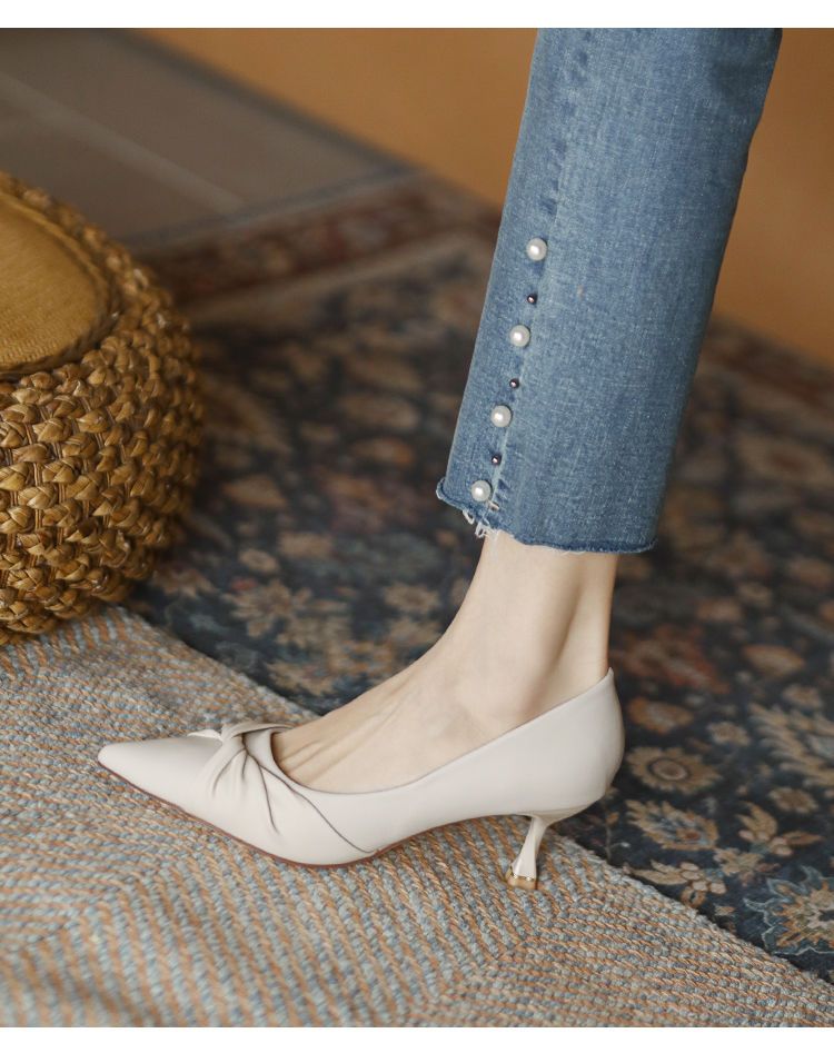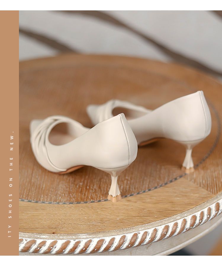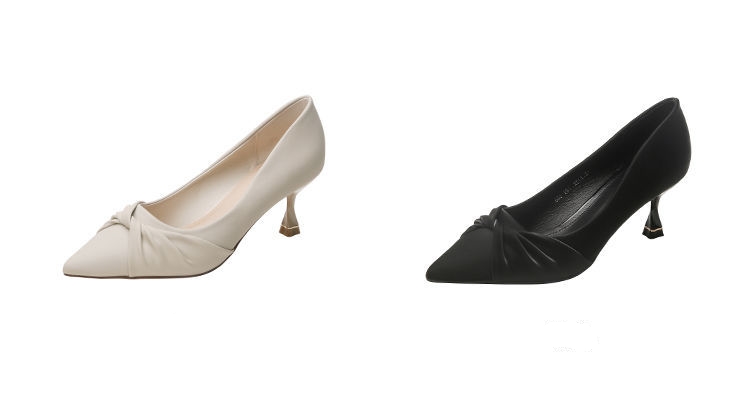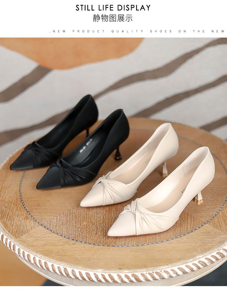 【ส้นสูง】 สีดำ สไตล์ใหม่ สง่างามความเป็นหญิง สง่างาม มีระดับ ออกแบบรองเท้าหัวแหลม รองเท้าหุ้มส้น สไตล์เกาหลี